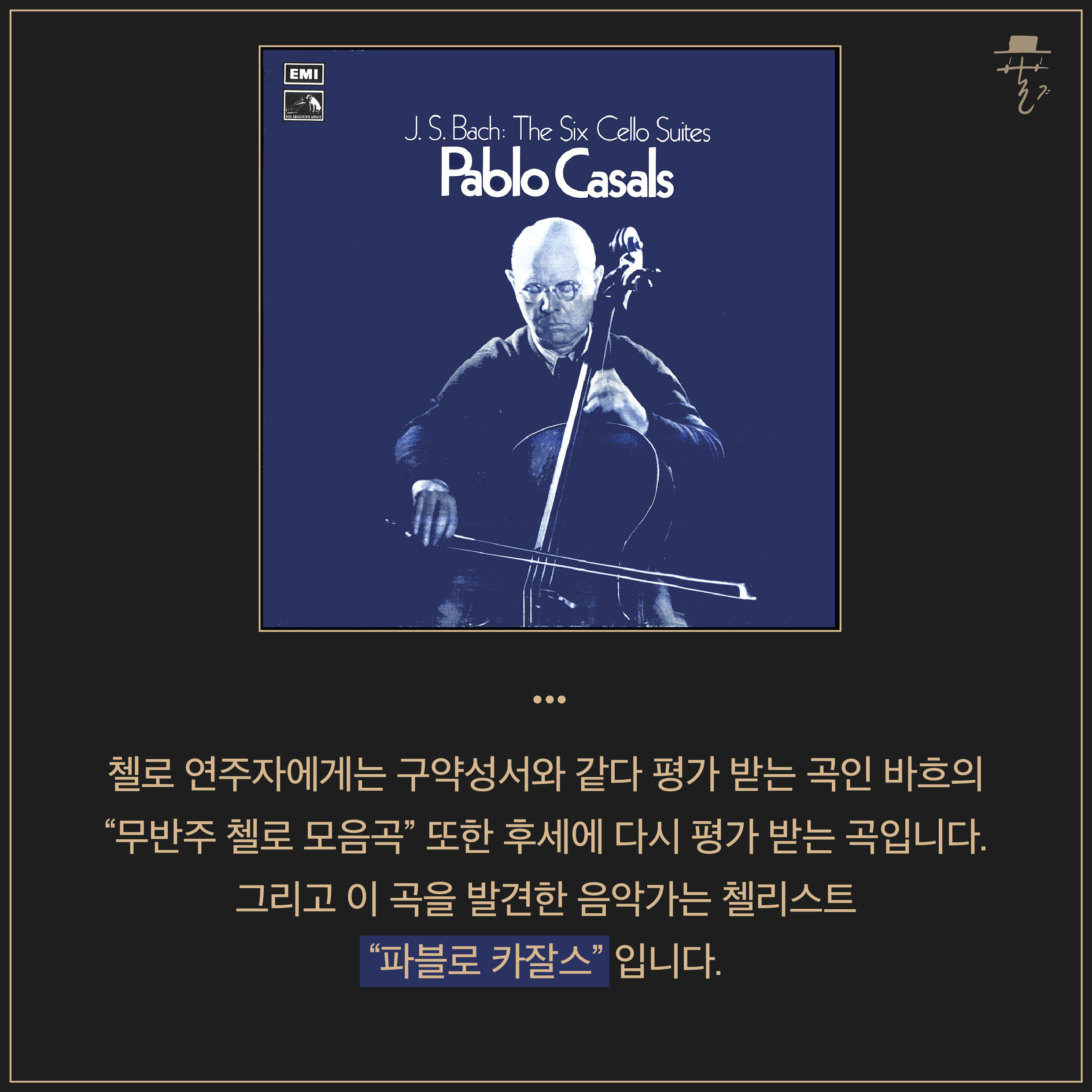At the age of 13, Casals discovered the score of Bach's "Cello Suite" at a classical music store in Barcelona, and after 12 years of practice, he played it in public to let the world know its true value.