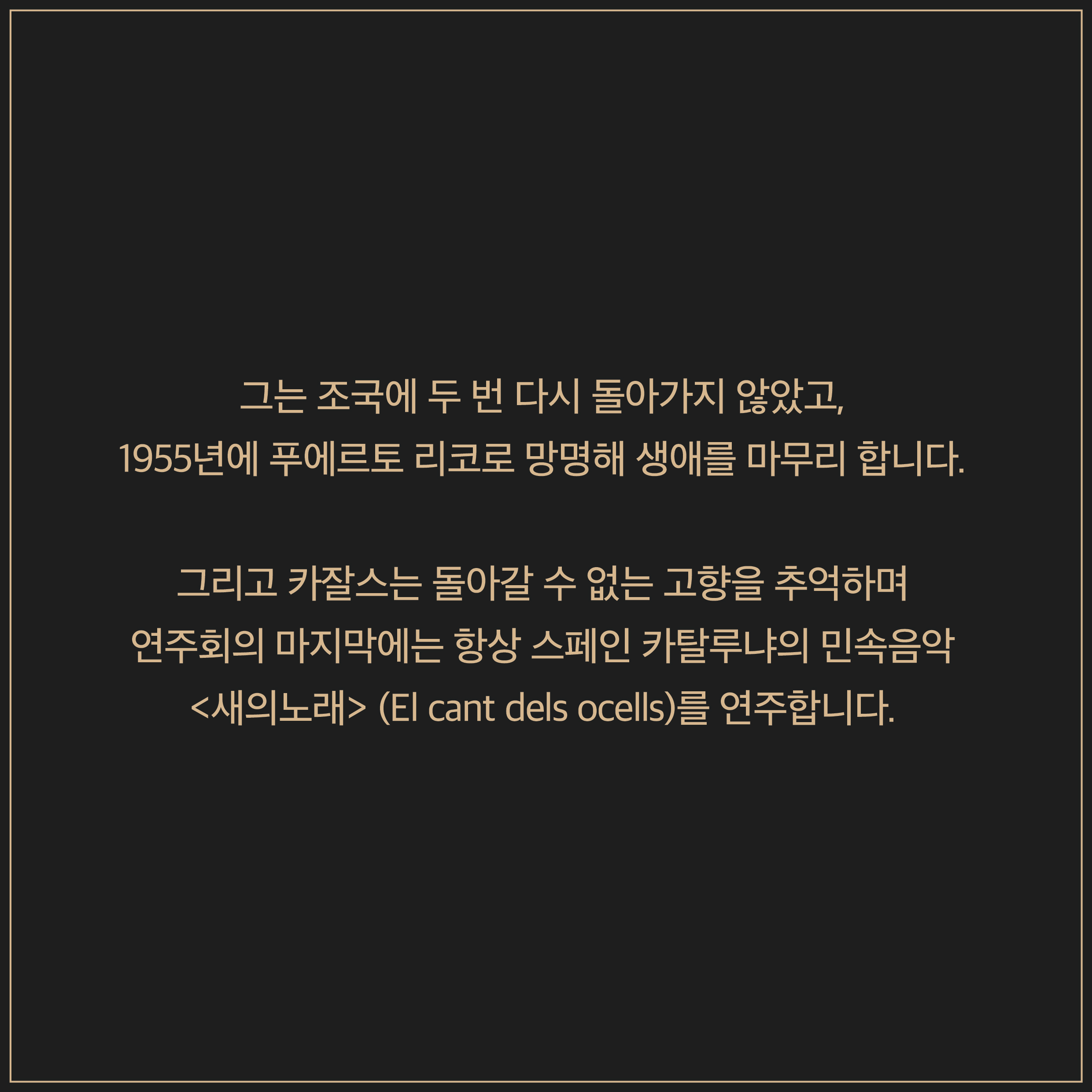 And Casals always plays the Spanish Catalan folk music "El cant dels ocells" at the end of the concert, remembering his hometown where he can't go back.