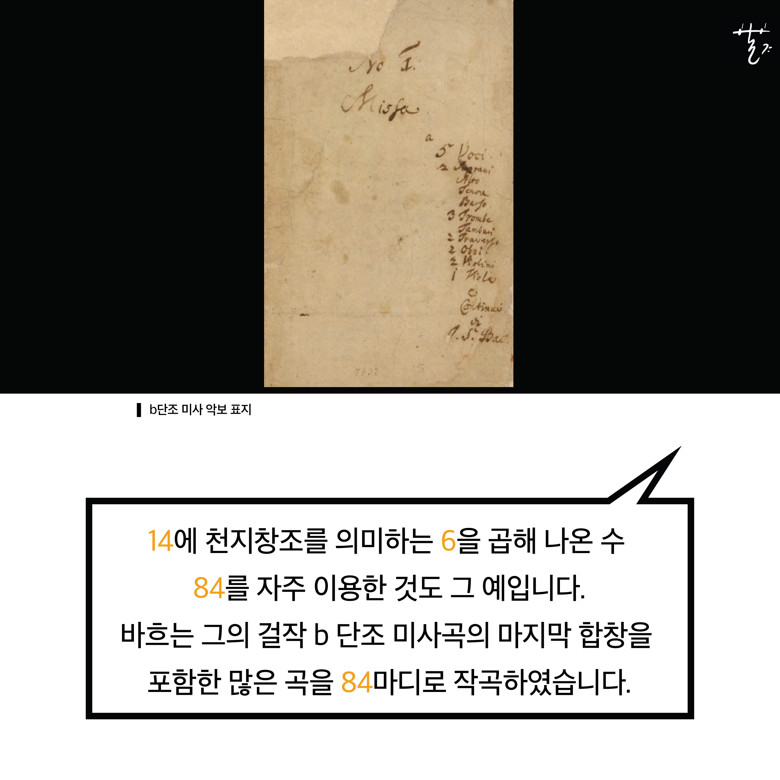 이는 바흐 본인을 의미하는 14와 천지창조를 의미하는 6을 곱하여 나온 84를 이용한 것으로 풀이됩니다.
