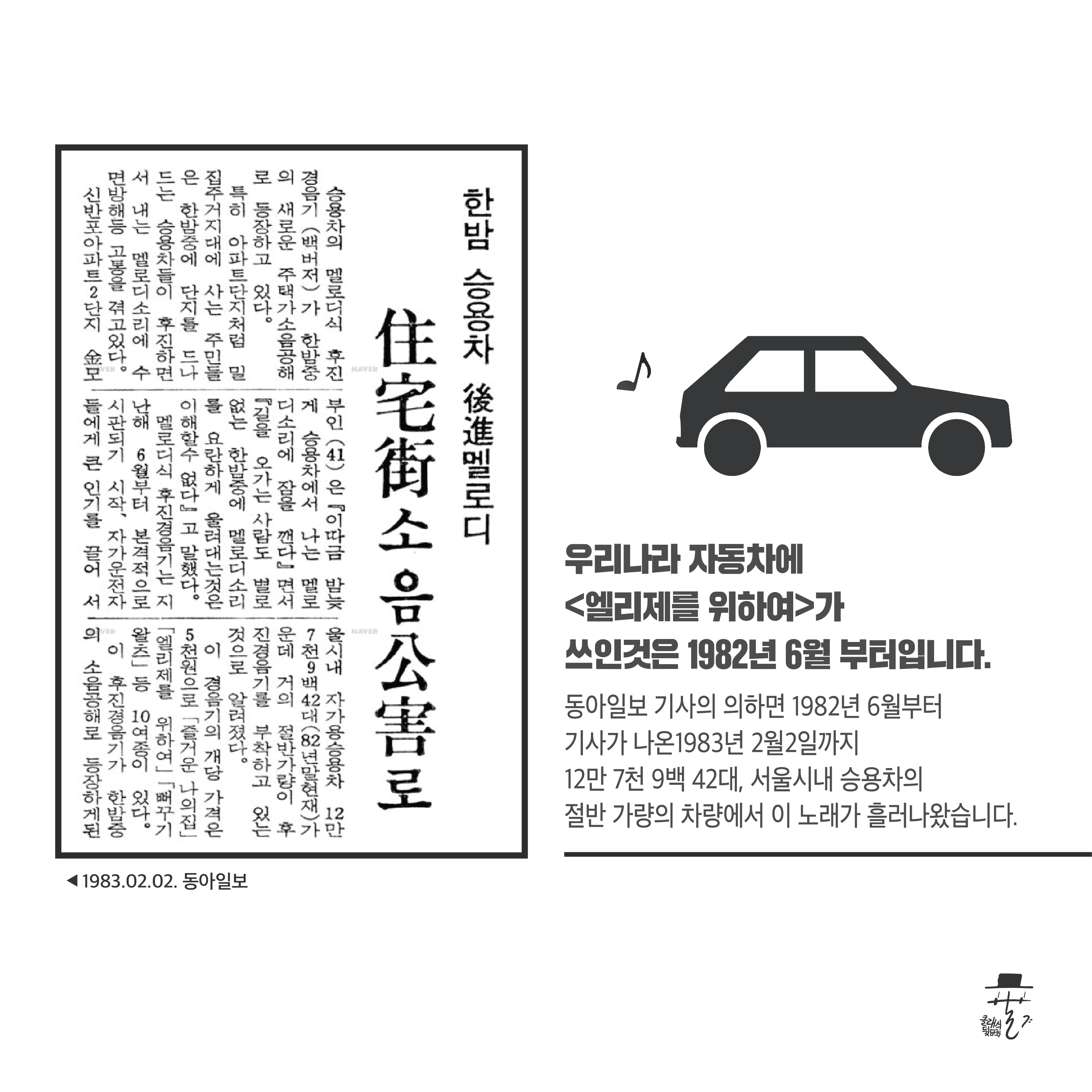 우리나라 자동차에 엘리제를 위하여가 쓰인것은 1982년 6월 부터입니다.
